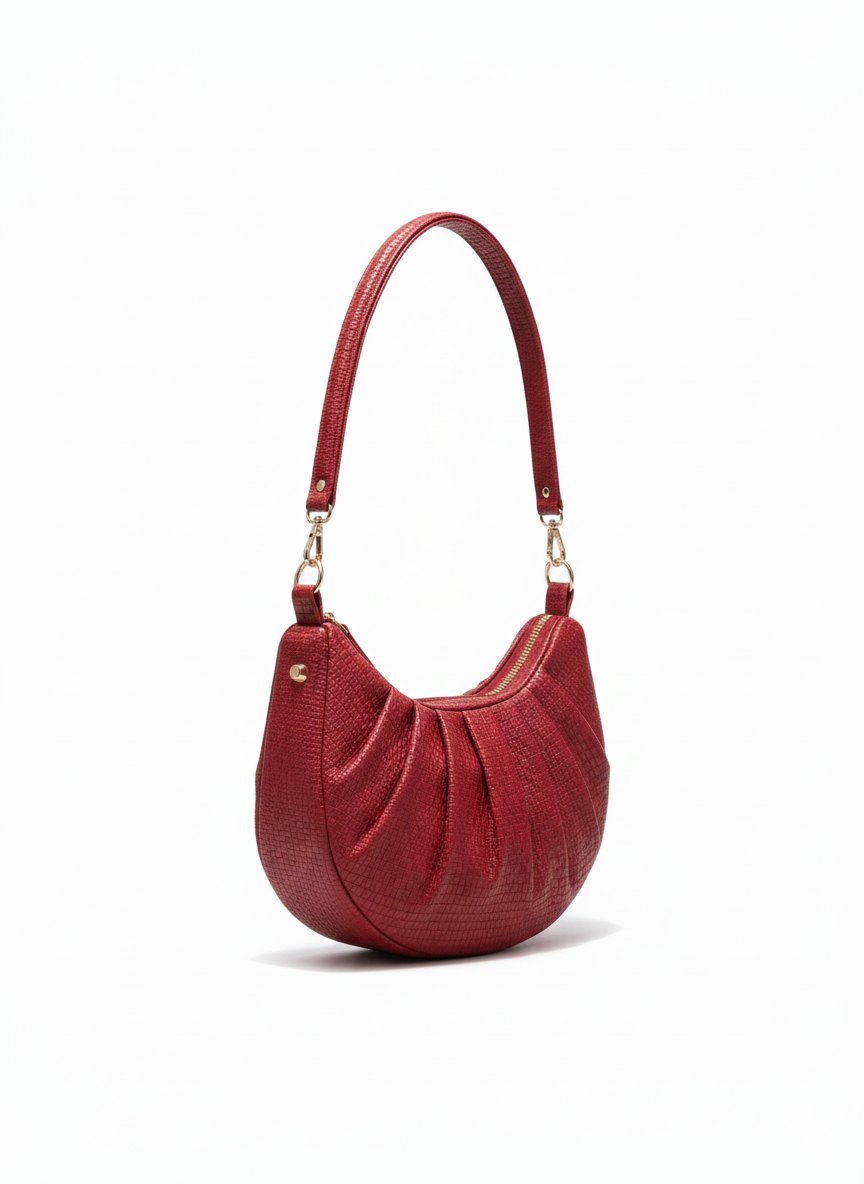 Apni daily look ko upgrade kar le is stylish Lehriya Shoulder Bag ke saath. Soft pleated design, classy shape aur blush pink shade—ye bag har outfit ko instantly premium bana deta hai.