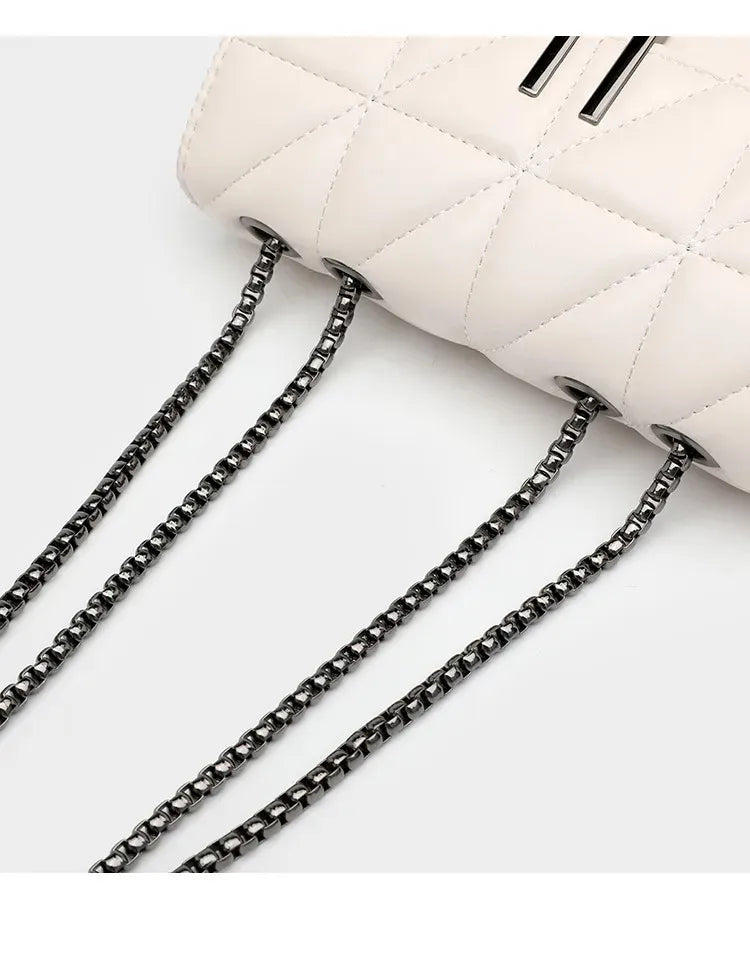 The metallic chain strap and secure lock closure add a touch of sophistication, making it perfect for both casual and formal wear.